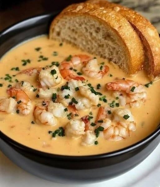 Rich, silky, and deeply flavorful, this Mediterranean-style seafood bisque combines tender shrimp and sweet crab meat in a creamy, aromatic broth infused with garlic, herbs, and a touch of tomato. It’s elegant enough for guests but simple enough for a cozy dinner at home.