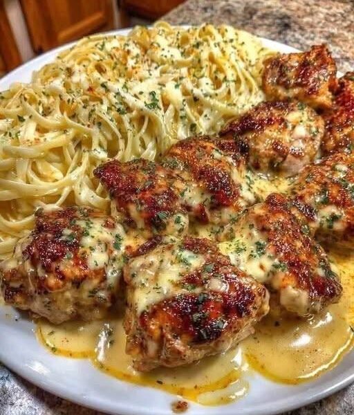 🍝 Creamy Garlic Butter Chicken & Linguine in Alfredo Sauce