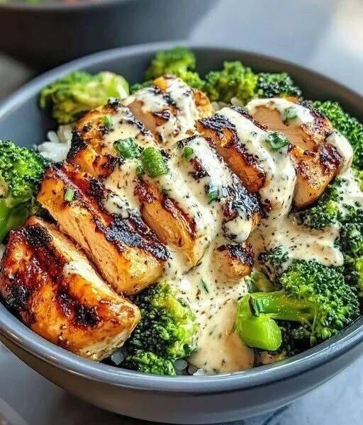 This creamy garlic chicken with broccoli rice bowl is a flavorful, nutritious, and satisfying meal perfect for lunch or dinner. Tender pan-seared chicken breast is sliced and served over fluffy rice and vibrant broccoli, then drizzled with a rich garlic parmesan cream sauce.