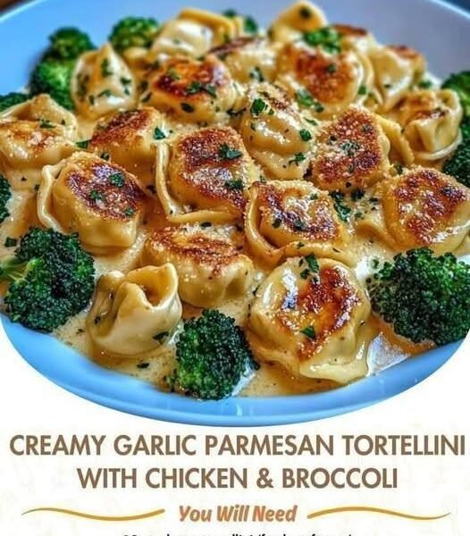 🍝 Creamy Garlic Parmesan Tortellini with Chicken & Broccoli (Mediterranean-Style Twist)