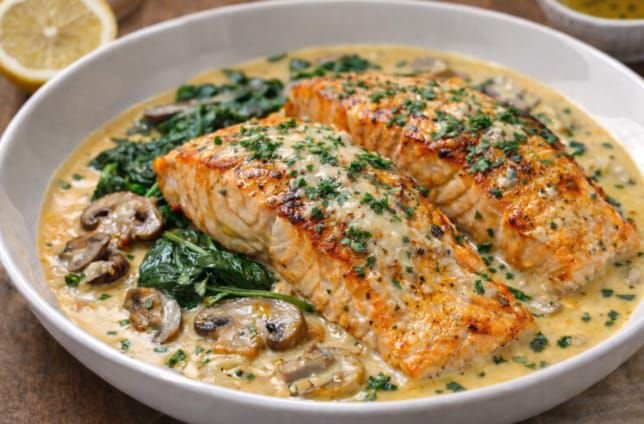 Rich, elegant, and full of bold Mediterranean flavor — this creamy garlic salmon is pan-seared until golden, then simmered in a light garlic-herb cream sauce with hints of lemon and sun-dried tomatoes. It’s perfect for weeknights but impressive enough for guests.