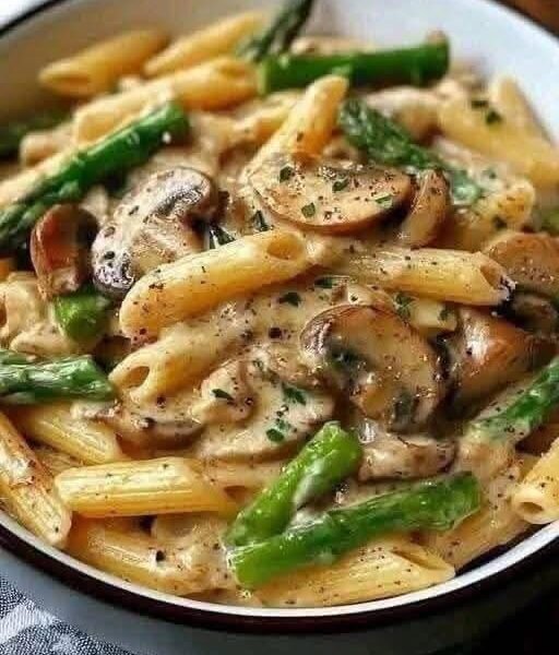 🍄 Creamy Mushroom & Asparagus Chicken Penne (Mediterranean)