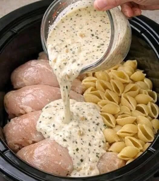 Just pour this rich, creamy mixture over raw chicken and pasta shells in your slow cooker and let it work its magic. The result? A cozy, ultra-comforting dinner that tastes like you spent hours in the kitchen — but barely lifted a finger.