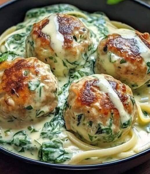 🍝 Creamy Spinach Meatballs (Mediterranean Style)