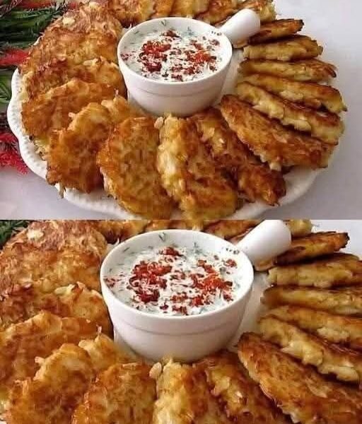These crispy potato fritters are golden on the outside, tender on the inside, and packed with savory flavor. Inspired by traditional Eastern European latkes, they’re shallow-fried to achieve that irresistible crunchy texture. Served with a cool garlic herb yogurt dip topped with paprika and dill, this dish makes an excellent holiday appetizer, brunch side dish, or party snack.