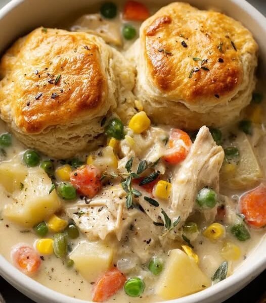 Serve with Biscuits: Bake biscuits (or puff pastry) separately. Serve pot pie filling in bowls and top with a golden biscuit.