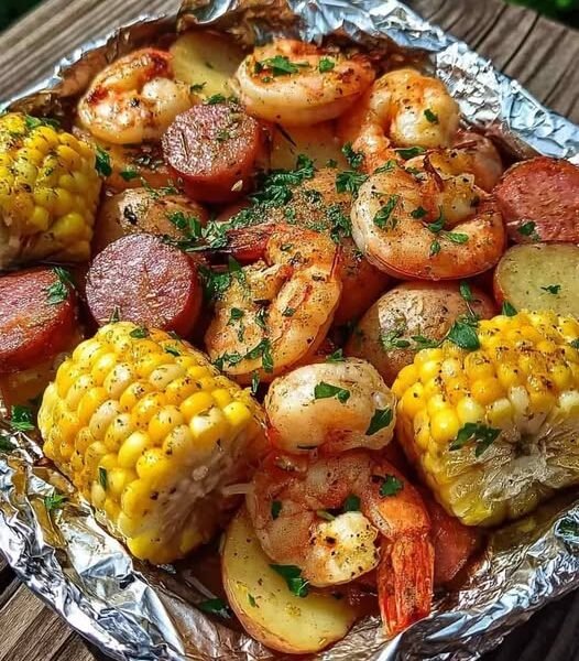 These Garlic Butter Shrimp Boil Foil Packets bring together tender shrimp, vegetables, lemon, herbs, and rich garlic butter with a Mediterranean twist. Inspired by coastal seafood cooking in Italy and the seaside kitchens of Greece, this version uses olive oil, fresh herbs, and citrus for big flavor without heaviness.