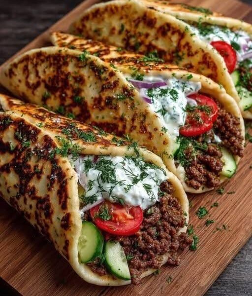 🥙 Greek Beef Pita Wraps with Tzatziki Sauce