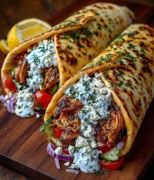 Juicy, herb-marinated chicken wrapped in warm pita and topped with a creamy lemon yogurt sauce — this classic street-style wrap is inspired by traditional Greek flavors you’d find in places like Athens.
