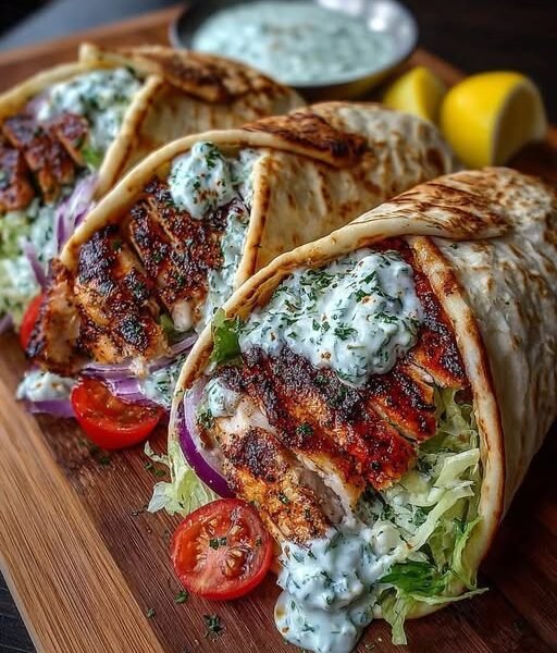 🌯 Greek Chicken Gyro Wraps with Spicy Cucumber Yogurt