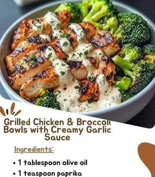 🍋 Grilled Chicken & Broccoli Bowls with Creamy Garlic Sauce
