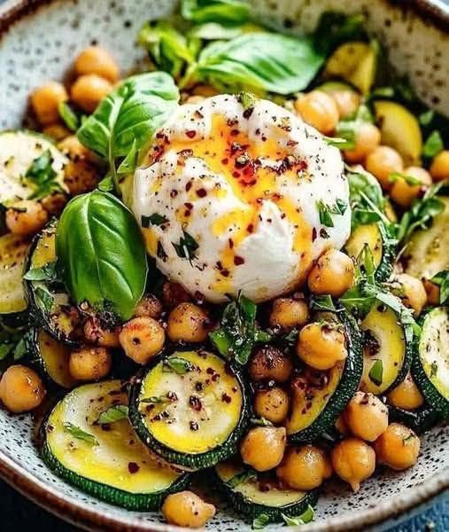 This vibrant salad combines smoky grilled zucchini, protein-packed chickpeas, and creamy burrata, all finished with a bold chili sauce drizzle. It’s light yet satisfying — perfect as a summer lunch, elegant side dish, or meatless main.
