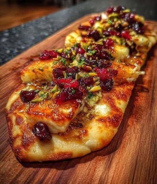 🧀🍊 Halloumi & Cranberry Flatbread with Pistachio & Orange Glaze