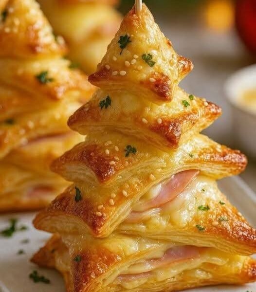 Ham & Cheese Holiday Puff Pastry Trees (Mediterranean Style)