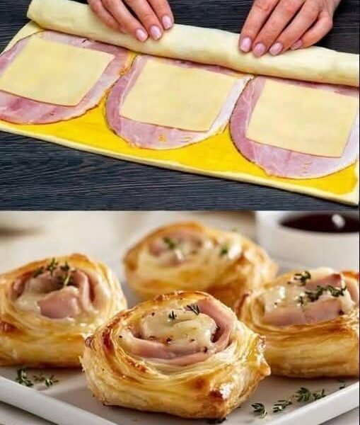 🥐 Ham & Cheese Puff Pastry Pinwheels (Mediterranean Style)