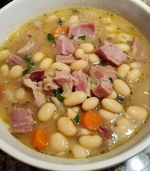 The magic comes from tender white beans—such as navy beans or great northern beans—slowly cooked with savory ham, aromatic vegetables, garlic, herbs, and a rich broth. As the beans soften, they naturally thicken the soup, creating a creamy texture without the need for heavy cream. Every spoonful is packed with protein, fiber, and comforting, smoky flavor.
