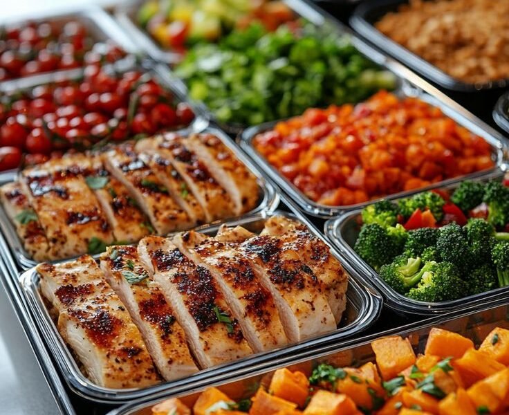 These High-Protein Chicken Meal Prep Boxes are designed for anyone following an anti-inflammatory diet, high-protein meal plan, or clean eating lifestyle. Featuring juicy grilled chicken breast, antioxidant-rich vegetables, and slow-digesting complex carbs, this meal prep is perfect for fat loss, muscle recovery, gut health, and weekly meal planning.