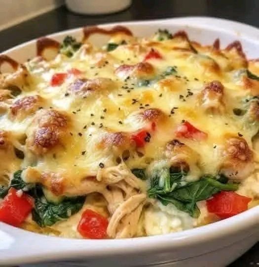 Loaded with tender shredded chicken, sautéed spinach, bell peppers, and melted cheese, this dish is naturally gluten-free and incredibly satisfying.