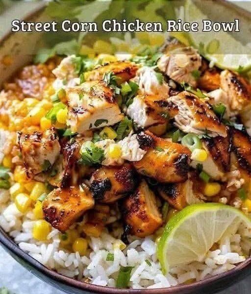 High-Protein Street Corn Chicken Rice Bowl