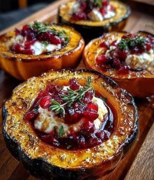 🍯 Honey-Glazed Acorn Squash with Creamy Goat Cheese & Cranberry Drizzle