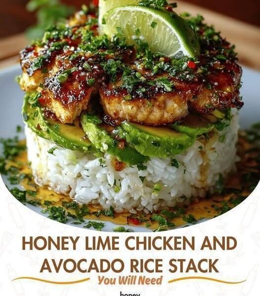 This Honey Lime Chicken and Avocado Rice Stack combines tender grilled chicken glazed with a naturally sweet honey-lime marinade, layered over olive oil–infused rice mixed with fresh herbs and topped with creamy avocado. The Mediterranean twist comes from extra virgin olive oil, fresh parsley, garlic, and optional feta or cherry tomatoes for added brightness.