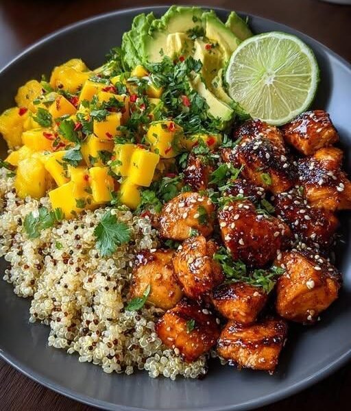 This Honey Lime Chicken & Mango Avocado Quinoa Stack is a vibrant, nutrient-dense bowl that combines sweet-savory glazed chicken, fluffy protein-rich quinoa, and a refreshing mango avocado salsa. Designed to support inflammation reduction, blood sugar balance, weight management, and heart health, this recipe is perfect for clean eating, meal prep, and healthy lifestyle goals.