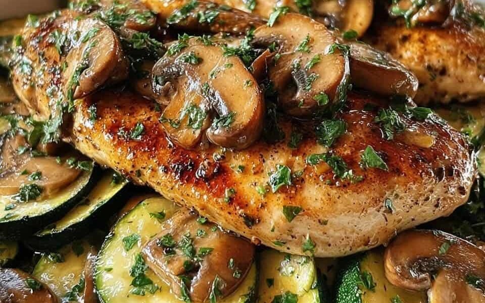This Italian Chicken, Mushrooms & Zucchini Skillet is a nutrient-dense, anti-inflammatory dinner packed with lean protein, antioxidant-rich vegetables, and heart-healthy olive oil. Tender, golden-seared chicken breasts are topped with savory sautéed mushrooms and zucchini, simmered in a light garlic-herb sauce.