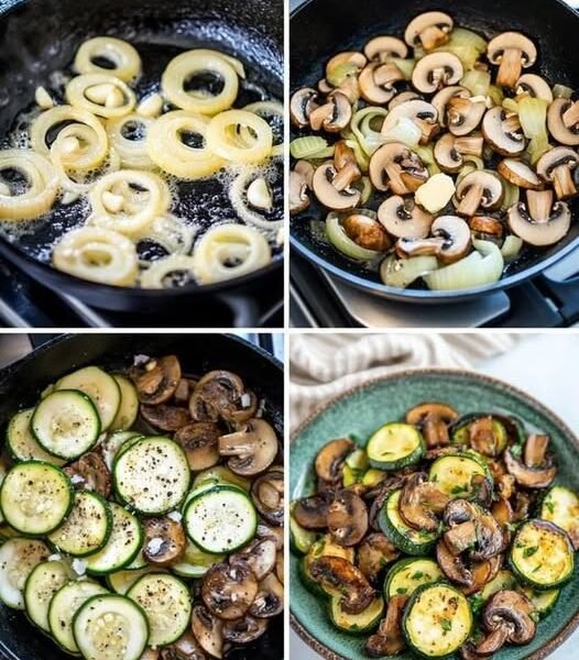 Toss in the zucchini slices. Stir gently to combine with the mushrooms. Cook for 4–5 minutes until zucchini is tender but still slightly firm. -