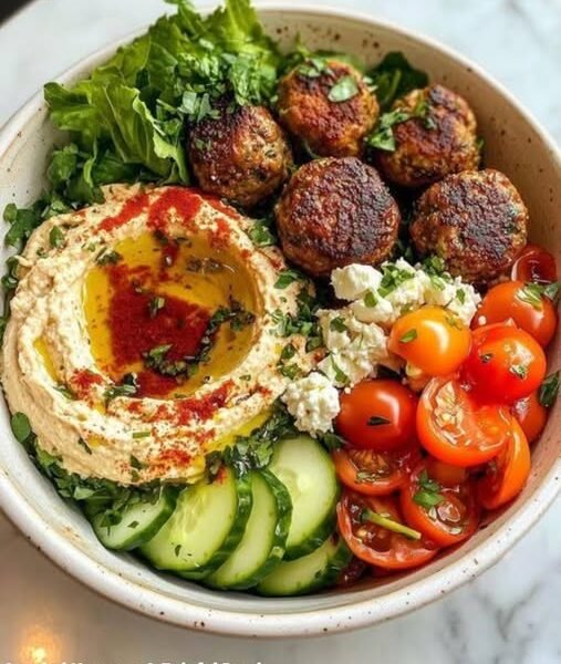 The Loaded Hummus & Falafel Bowl is a vibrant Mediterranean meal built on a creamy hummus base and topped with crispy falafel, fresh vegetables, herbs, and tangy sauces. It’s packed with plant protein, fiber, and bold flavors—perfect for a nourishing lunch or an easy dinner that feels both wholesome and indulgent.