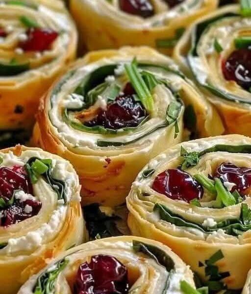 🌀 Low-Carb Cranberry Feta Pinwheels (Mediterranean-Style)