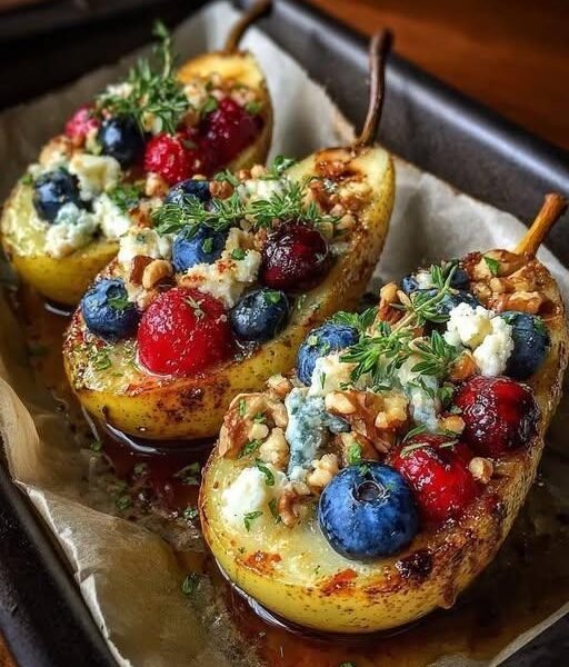 🍐🍯 Mediterranean Baked Pears with Honey, Fresh Berries, Walnuts & Feta Crumble