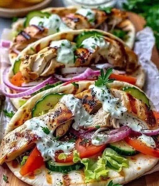 Mediterranean Chicken Gyros with Homemade Tzatziki Sauce