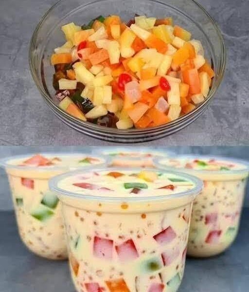 This colorful dessert is a Mediterranean-inspired fruit custard that’s light, creamy, and irresistibly fresh. It comes together in just 10 minutes, looks beautiful on the table, and tastes even better chilled. No wonder everyone loved it at your dinner party!