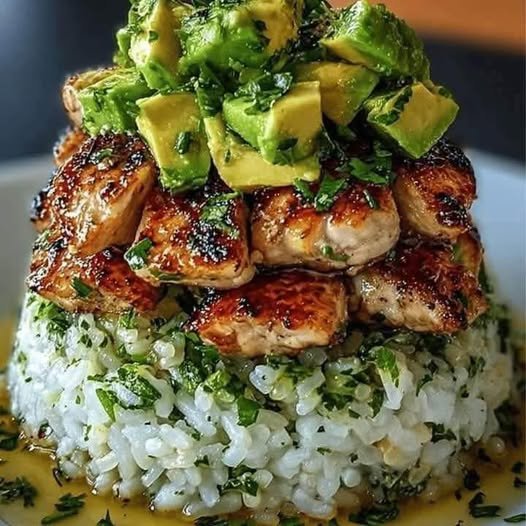 🍋 Mediterranean Honey Lemon Chicken & Avocado Rice Stack