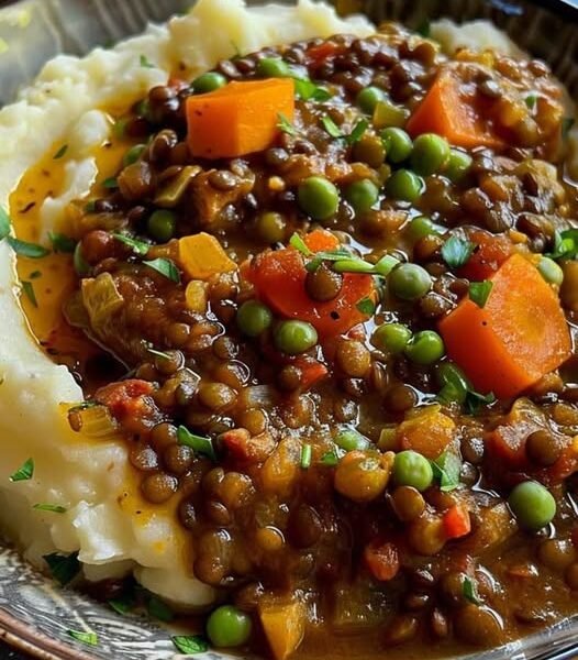 🌿 Mediterranean Lentil Stew on Mashed Potatoes