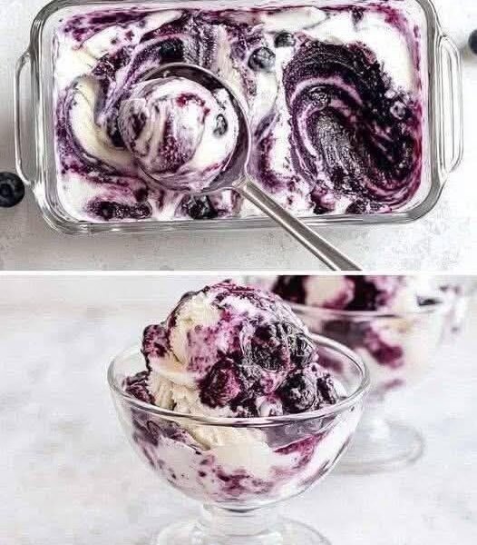 Gently fold blueberry sauce through the ice cream for ribbons of fruit.