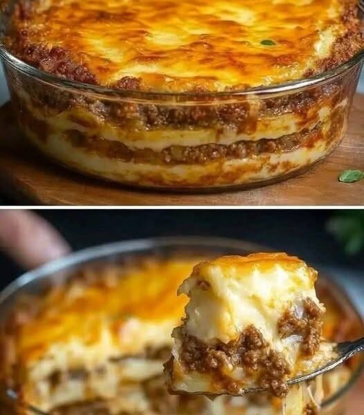 This Mediterranean casserole is inspired by classic Greek moussaka. It features layers of savory ground meat simmered in tomato and spices, tender potatoes or eggplant, and a creamy béchamel-style topping baked until golden. The result is hearty, comforting, and deeply flavorful—perfect for family dinners, gatherings, or meal prep.