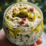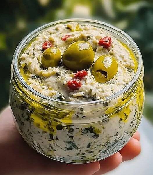 This Mediterranean Olive & Herb Ricotta Spread is a luxuriously creamy, savory dip that brings together the bold flavors of green olives, fresh herbs, garlic, and extra virgin olive oil. Light yet deeply satisfying, it’s the kind of recipe that feels gourmet while taking just minutes to prepare.