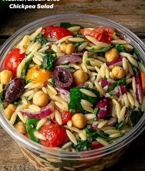 This Mediterranean salad is light yet satisfying, combining tender orzo with hearty chickpeas and crisp vegetables. The zesty lemon dressing ties everything together, while feta and olives add a savory, tangy depth. It’s perfect as a healthy lunch, side dish, or meal prep option.