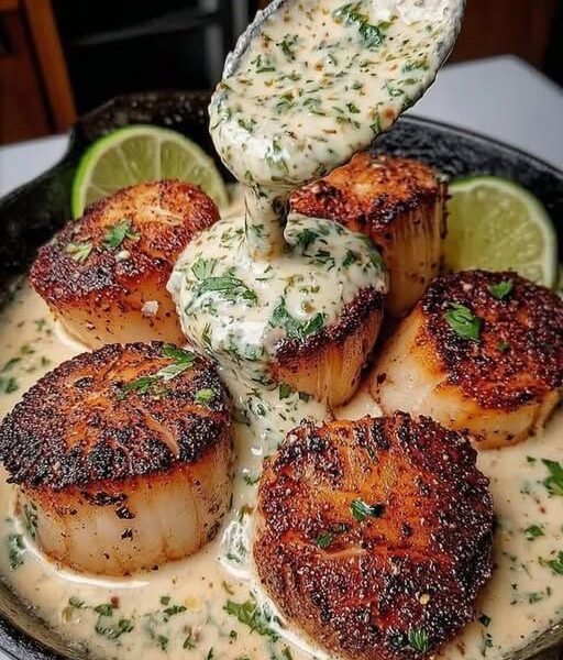 🌊 Mediterranean Sizzling Scallops with Zesty Lime Cilantro Sauce