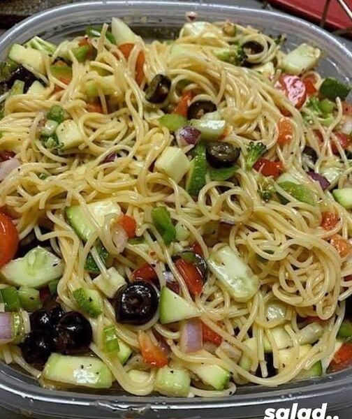 This colorful, refreshing salad combines tender spaghetti with crisp vegetables, briny olives, and a zesty olive oil dressing. It’s light yet satisfying—perfect for summer meals, picnics, or meal prep. The flavors get even better as it sits!