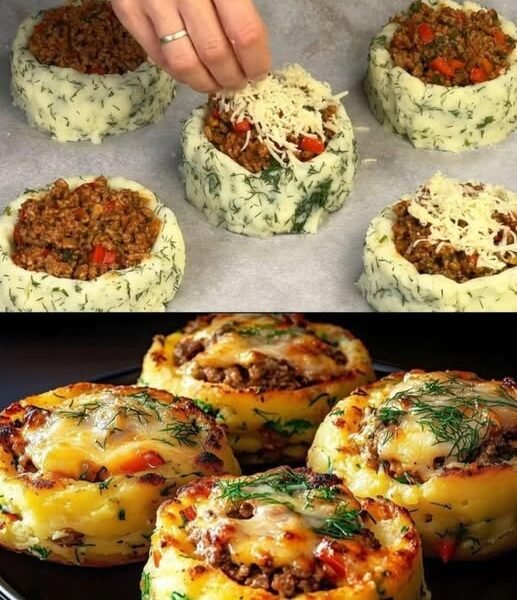 Mediterranean Stuffed Mashed Potato Nests