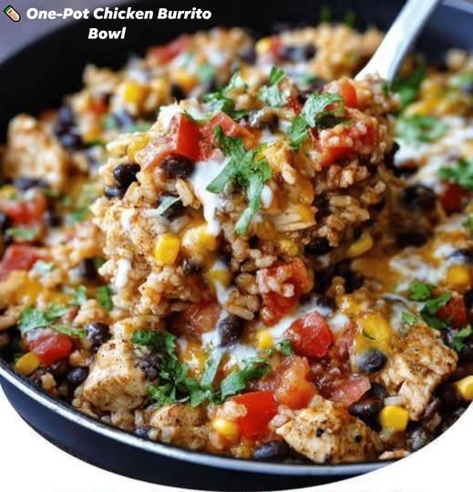 This One-Pot Chicken Burrito Bowl combines lean chicken, fragrant rice, vegetables, beans, and spices in a single pot for easy cooking and minimal cleanup. With extra-virgin olive oil, fresh herbs, and light toppings, it fits beautifully into a Mediterranean-style eating pattern—nutritious, satisfying, and perfect for meal prep.