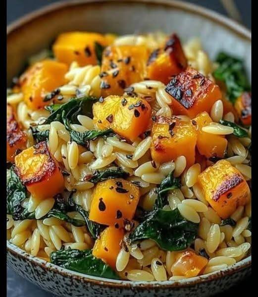 Orzo with Roasted Butternut Squash and Spinach