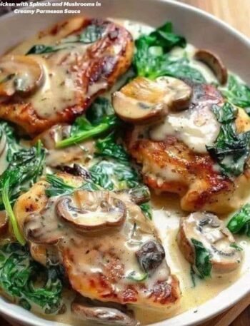 🍗 Chicken with Spinach & Mushrooms in Creamy Parmesan Sauce 🌿 Description Juicy pan-seared chicken simmered in a silky garlic-Parmesan …