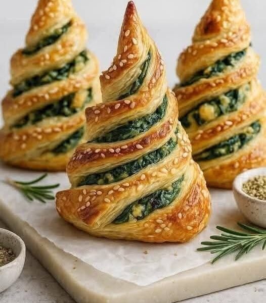 Puff Pastry Spinach Christmas Trees (Mediterranean Style)