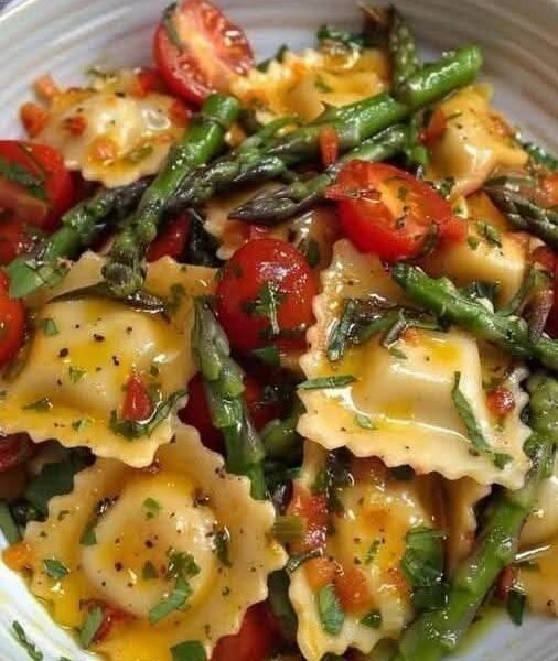 A vibrant Mediterranean-inspired pasta dish featuring tender cheese ravioli tossed with blistered cherry tomatoes, crisp asparagus, garlic, fresh herbs, and heart-healthy olive oil. This anti-inflammatory recipe is rich in antioxidants, phytonutrients, and healthy fats—perfect for clean eating, weight management, and a balanced lifestyle.