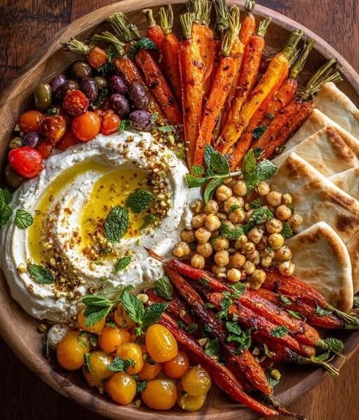 A Roasted Carrot & Hummus Mezze Platter is the kind of dish that looks effortlessly luxurious while secretly being healthy, budget-friendly, and incredibly easy to prepare. Inspired by Mediterranean and Middle Eastern cuisine, this mezze platter combines sweet, caramelized roasted carrots with creamy hummus and a variety of vibrant accompaniments. It’s perfect for entertaining guests, healthy snacking, plant-based meals, or even as a light dinner.