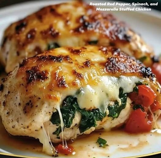🌶️ Roasted Red Pepper, Spinach & Mozzarella Stuffed Chicken