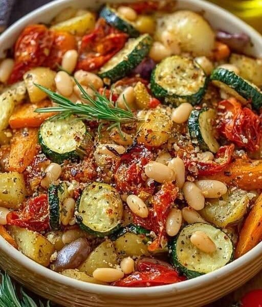 This rustic bake combines caramelized roasted vegetables with creamy cannellini beans, garlic, herbs, and olive oil. It’s warm, nourishing, and packed with natural flavor—perfect as a main dish or a satisfying side. Think cozy, oven-roasted goodness with a healthy Mediterranean twist.